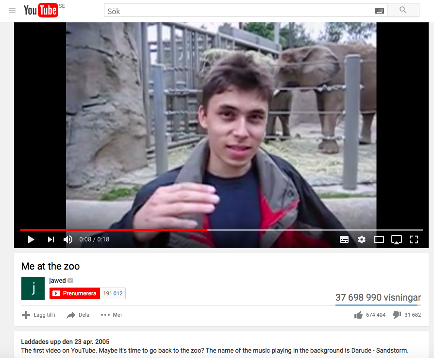 Youtube grundades i USA år 2005. Det grundades av Chad Hurley, Steve Chen och Jawed Karim. Det första klippet heter ”Me at the zoo”. Det är ett klipp från när Jawed Karim tittar på elefanter på zoo. Sedan har Youtube blivit större och större.