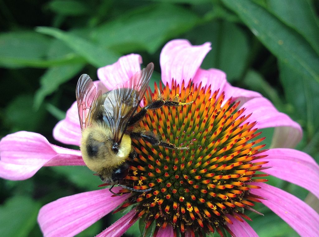 Humlor pollinerar blommor.