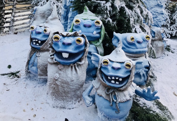 Snötomtar invaderar Folkets park! De har gjort ett litet hus i parken.