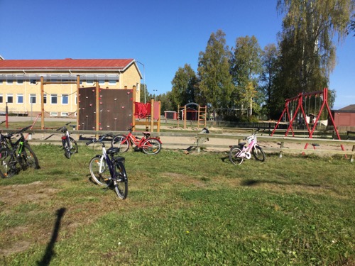 Vi vill gärna ha ett cykelskjul på våran skolgård så vi slipper blöta rumpor.
