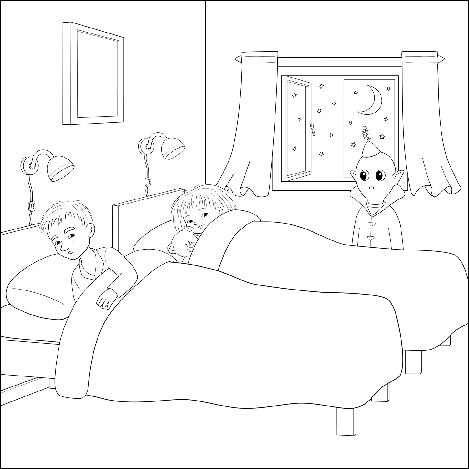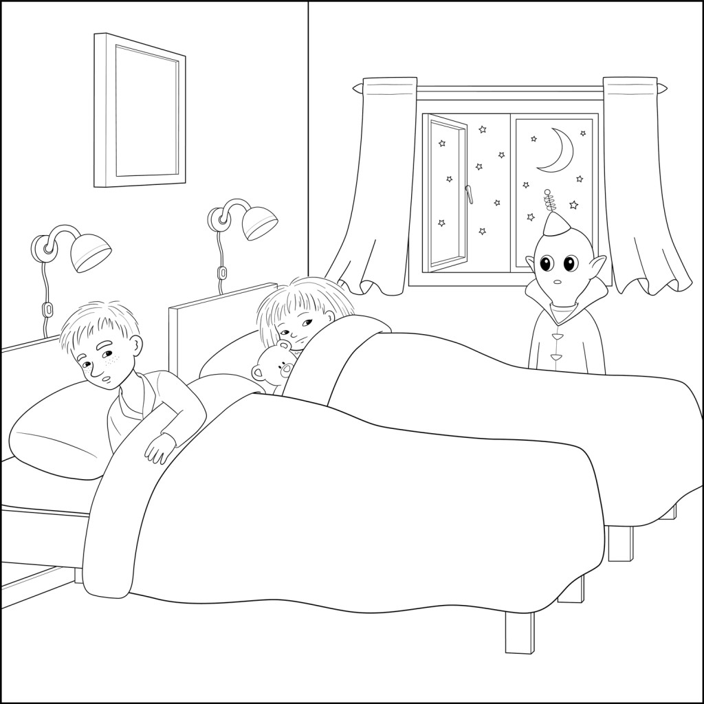 Skriv ut bilden med Minja och Mino och färglägg den.