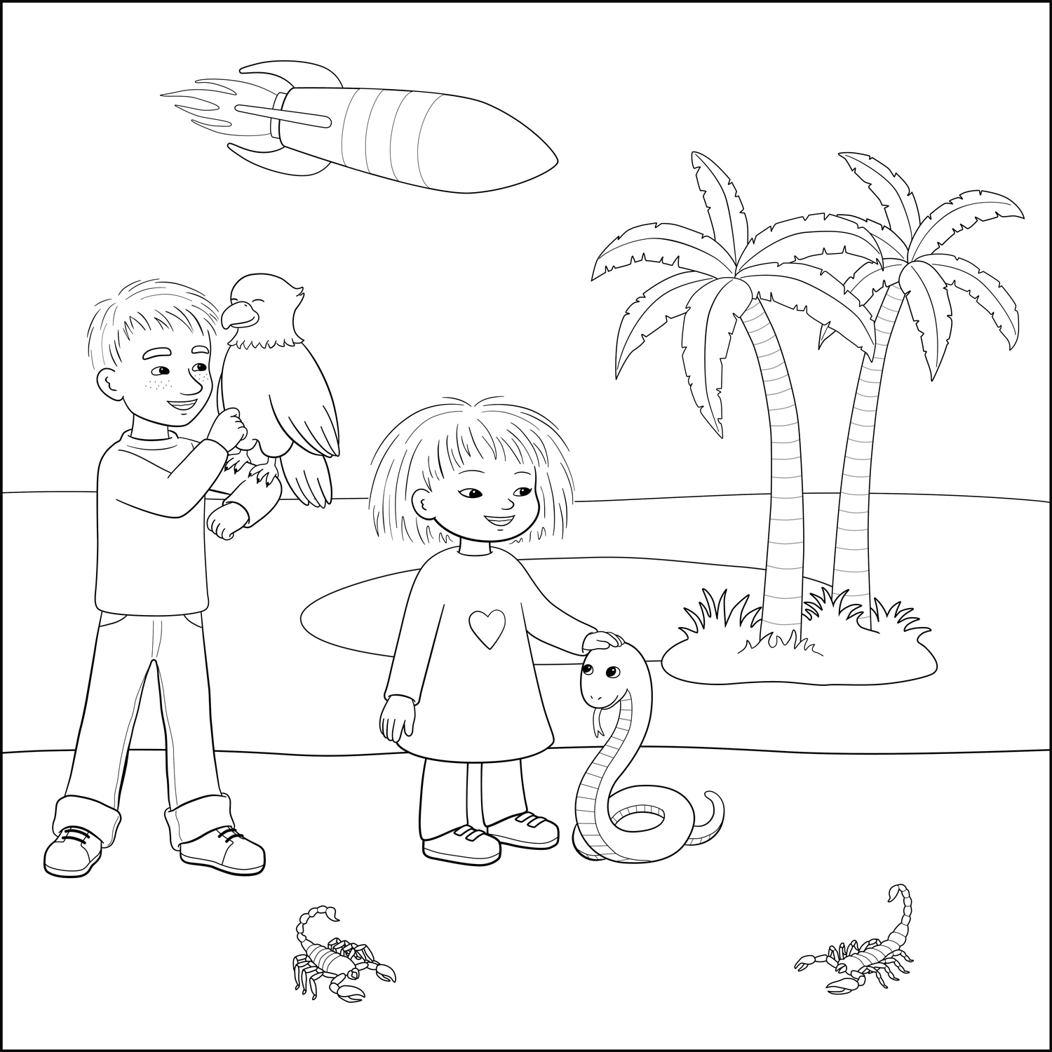 Skriv ut bilden med Minja och Mino och färglägg den.