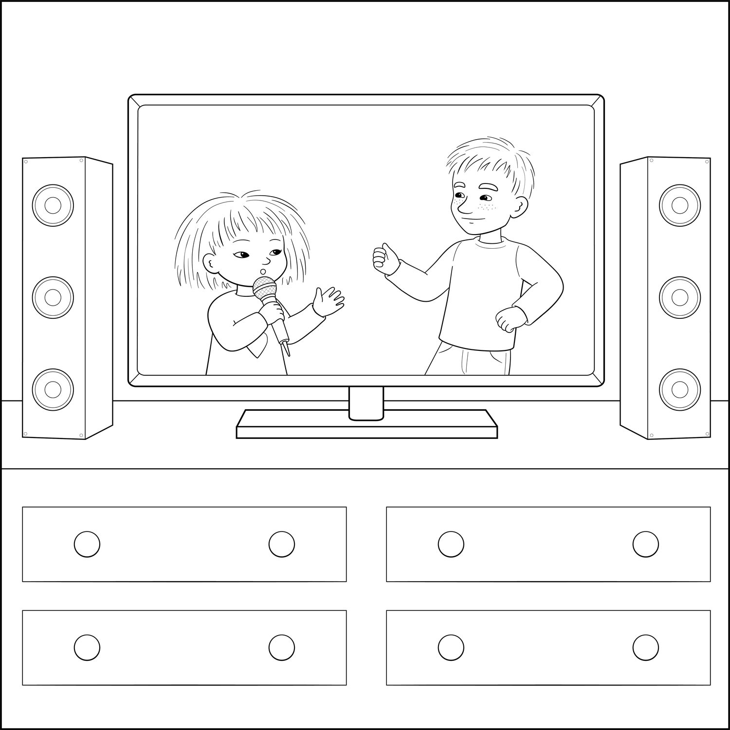 Skriv ut bilden med Minja och Mino och färglägg den.