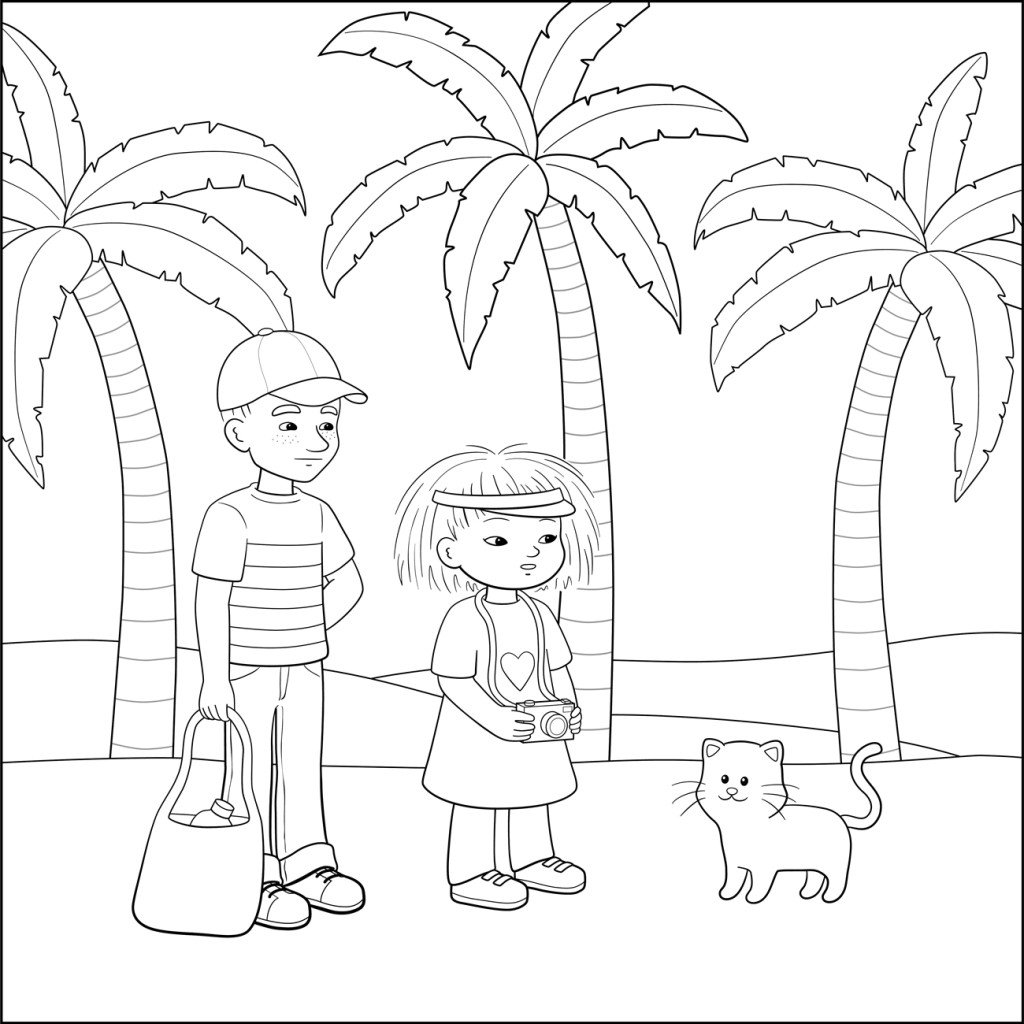 Skriv ut bilden med Minja och Mino och färglägg den.