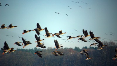 Axel Hagström lyckades fotografera en flock gäss som bildade ett freds...