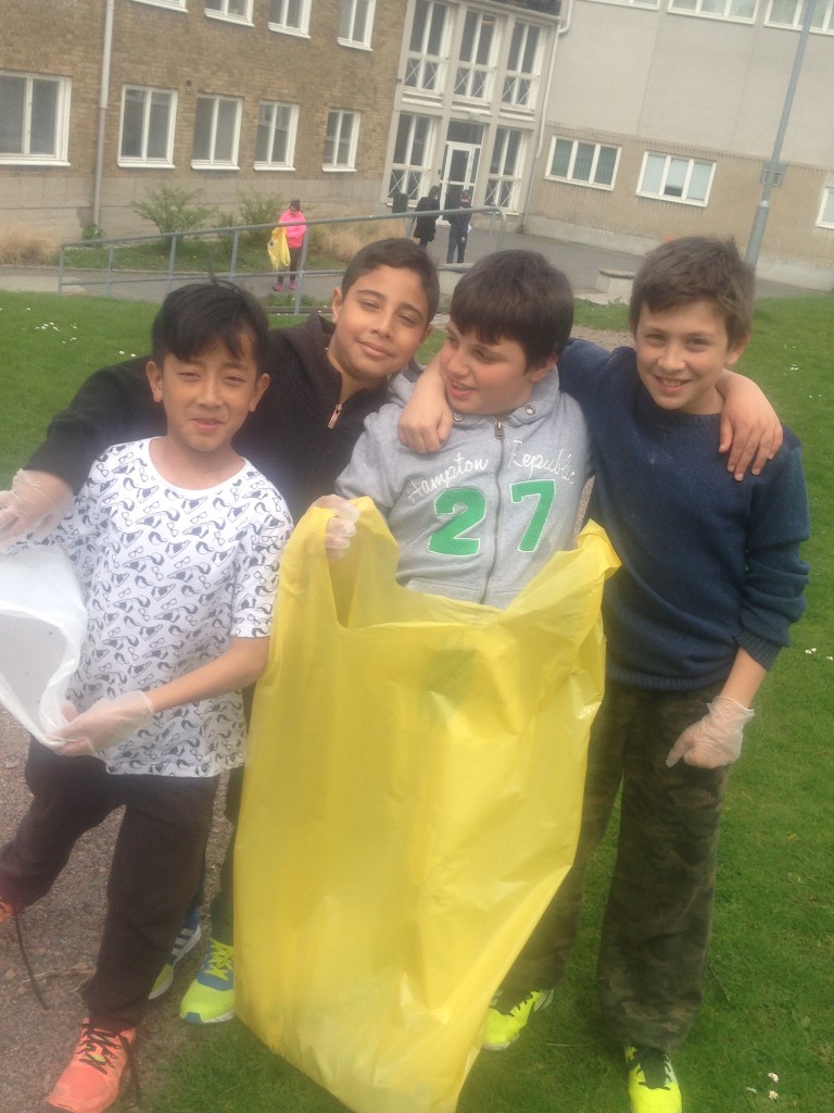 Framtidsveckan firas i området Seved. Under fredagen fick femmorna plocka skräp på Sofielundsskolan.