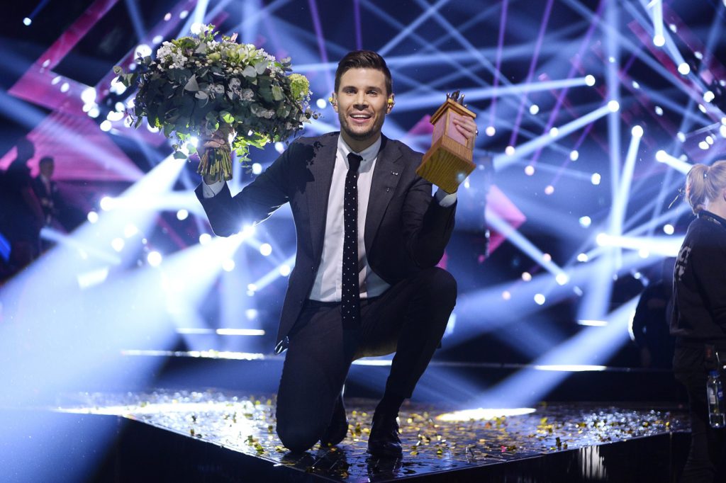 Grattis till Robin Bengtsson som vann Melodifestivalen! Nu får han tävla för Sverige i Eurovision. Källa: SVT/Stina Stjernkvist.