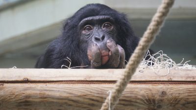Schimpanserna Maria-Magdalena, Tjobbe äter och dricker.